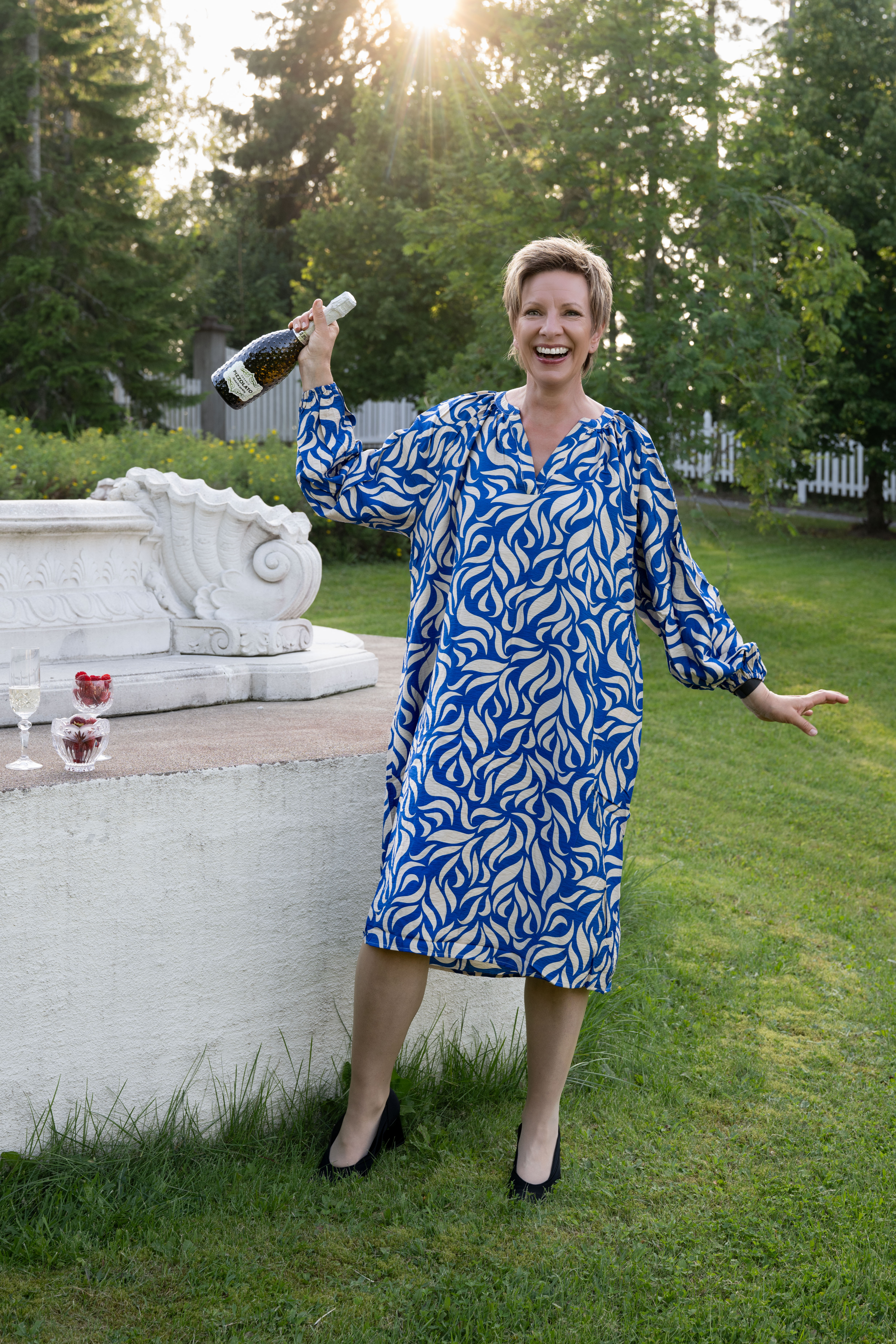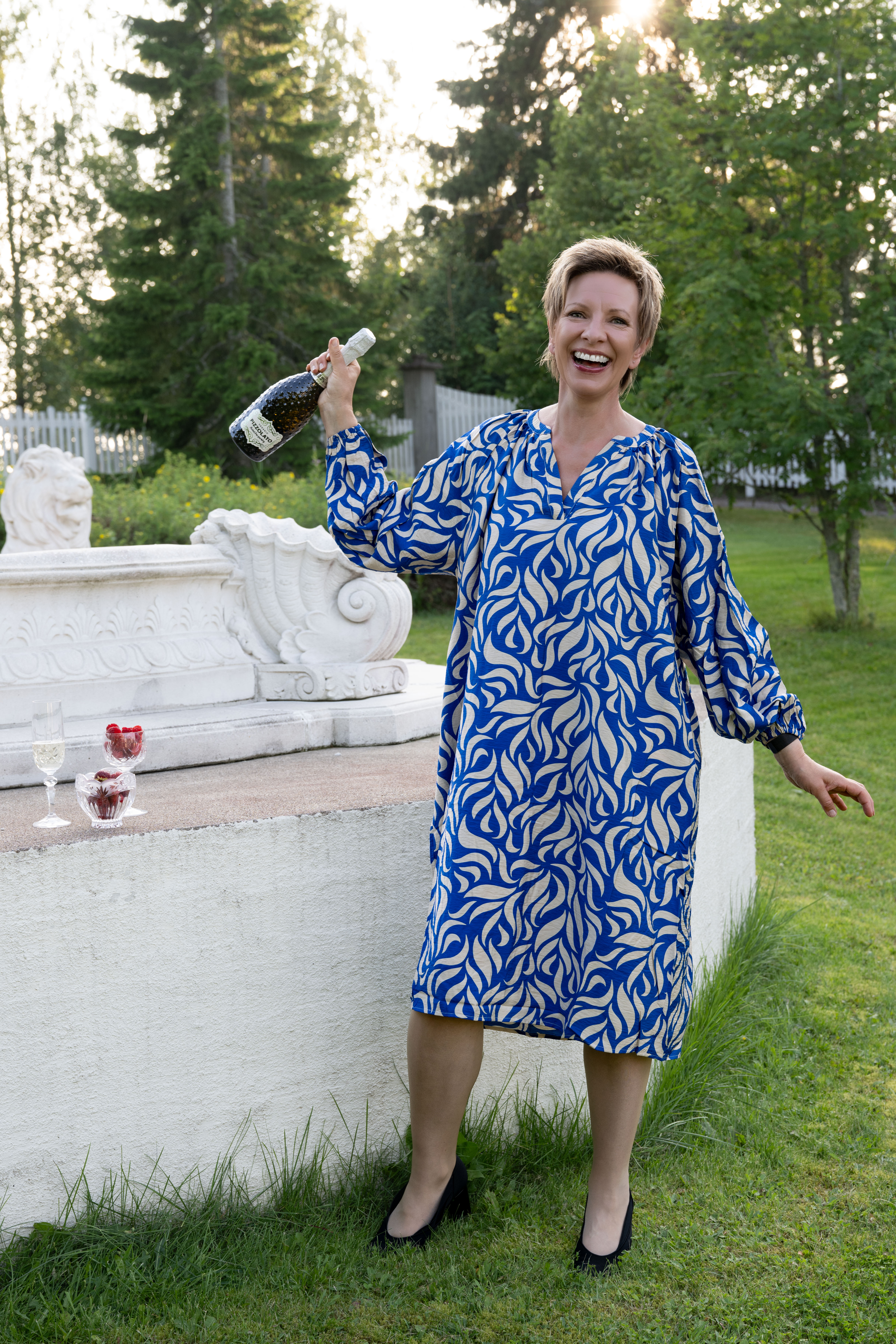 Soulmate Zaba - rento väljä A-linjainen sinikirjava tunikamekko pussihihoilla - arkeen ja juhlaan. Koot S, M, XXL - mainitse lisätiedoissa haluamasi koko.
